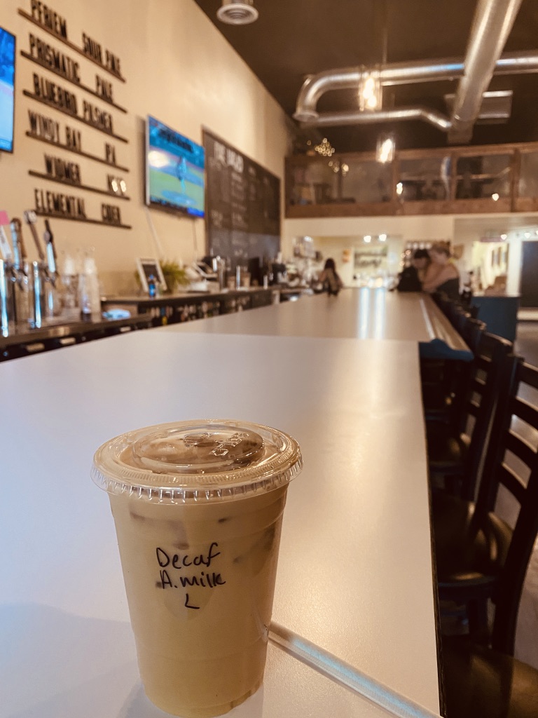 - The Coeur D’Alene coffee company: This is undoubtedly the best coffeeshop in Coeur D’Alene with a massive space. It has loads of seating with all different types of cushy chairs and couches and even a large fireplace! This is the type of place where the coffee itself is very good & so are their fun spins on classic drinks. Ambiance: 9 Coffee: 7 Food: 4