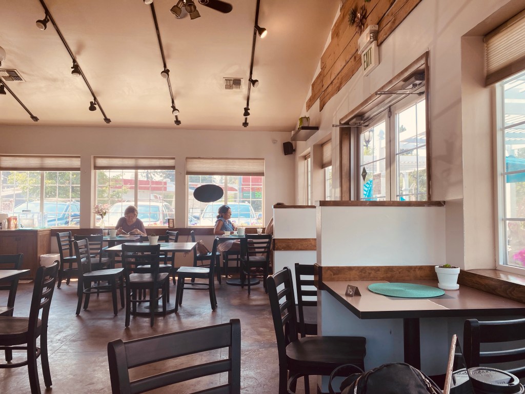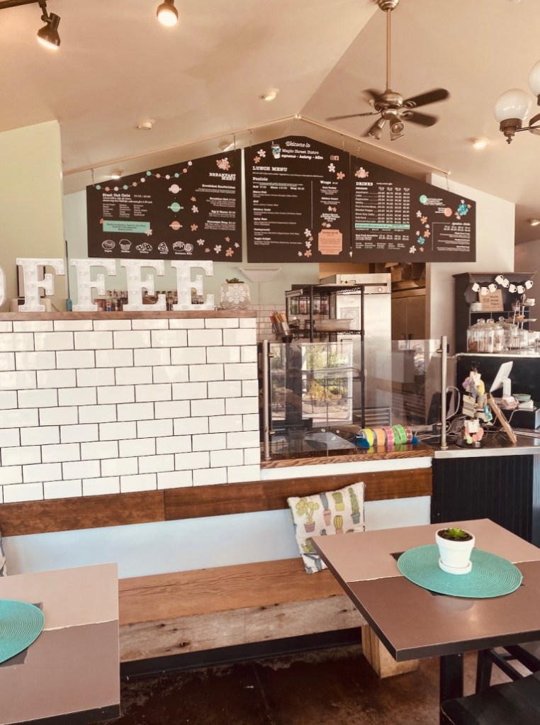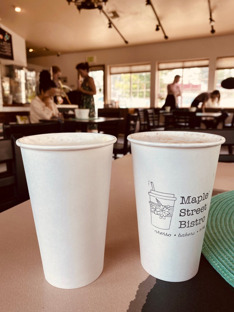 Maple Street Bistro is a coffeeshop in North Spokane on, you guessed it, Maple Street (5520 N Maple St, Spokane, WA 99205 to be exact). When we entered this house-looking building, we saw a fittingly homey interior. It has a cute, fresh ambience with black, white and brightly colored flowers on the menus and walls, surrounded by lots of windows. After taking it all in and being welcomed by the barista, we found ourselves a table in the corner of this medium shop. They also offer the option to sit outside or just pick up coffee to go in the to go window.