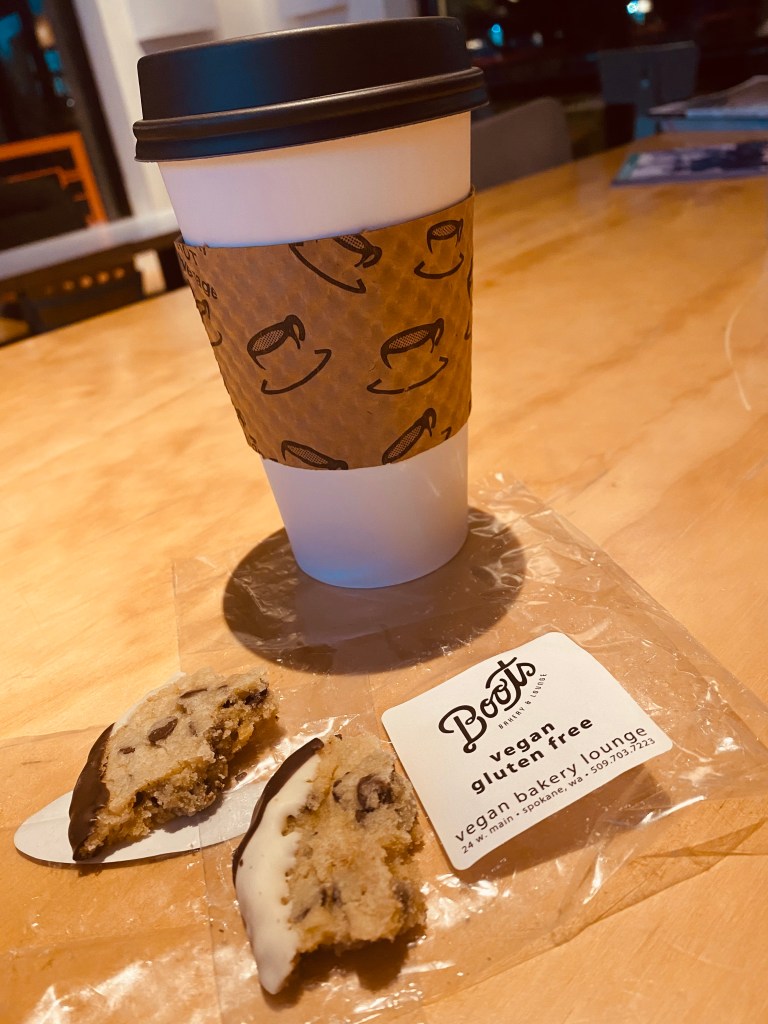 When ordering, we asked the friendly barista what his favorites are. We end up with a matcha w almond milk + sugar free vanilla ($6.55) and a latte w black pepper and clove flavoring (about $6). Revel has very frothy coffee that reminds you why you spend all your extra dollars on bean water. Of course, because our cookie monster of a father joined this outing, we tried the Black and White chocolate chip cookie and Gingerbread Cookie. They have pastries as well as some other savory snacks on the menu. Overall, the prices are a little above average.