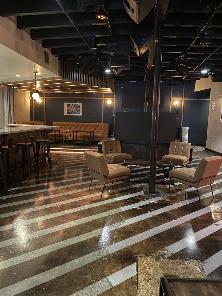 After I ordered, I was looking around for a place to sit and found that I needed to venture farther down the rabbit hole into the back of the coffeeshop. After walking through a doorway it transformed from coffeeshop to a chill bar feel. I looked around and found that the industrial floor was covered by relaxed seating and booths. There is a fully stocked bar in this backroom/nightlife hotspot. I sat down and was content to get comfy in a deep blue armchair. Soon, the barista called my drink, and I hopped up to grab it.