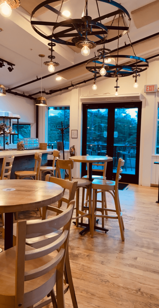 I’m going to be honest–this one is my favorite. It has parking straight across from it, and it is in the cute town of Falls Church. When you walk in, you will be met with the large amount of seating of all sorts (tables, benches, etc.) but the best space is upstairs. So, find the stairs in the back, and take them to find some great rooms upstairs. First, there is a lovely sunny room. In addition to this room, if you continue down a hallway, there is a small wood-lined, cozy room in the back. Also, there are doors to a patio that everyone loves (when the weather is decent).