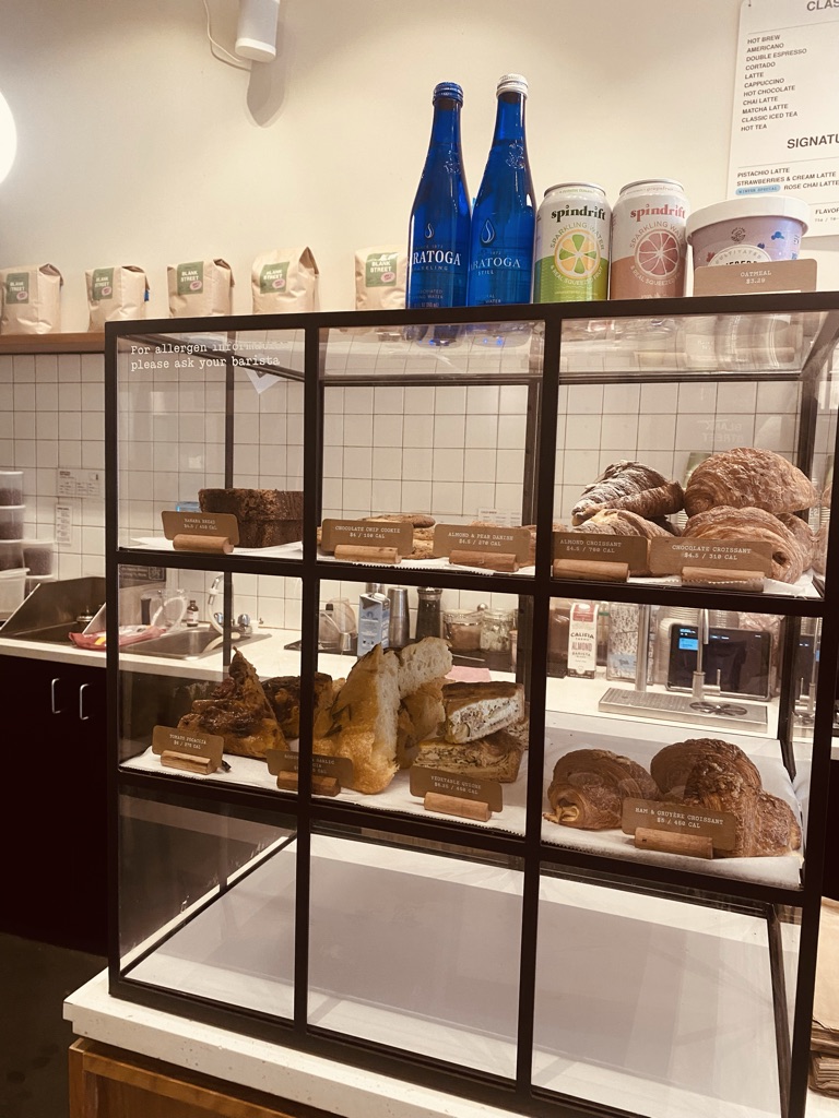 The walls around you are white and olive. This combines with other wood and plant accents to create a lovely, minimalist space that one could stay in for hours. The seating is limited in the one because it is nestled in next to a bookstore (I know, amazing right). It has a window seat and a bar to relax at. While I was there, another was taking a zoom call next to me–what a great idea. Because it is in a busy area, there is street parking (I had no problem this day, but it has been a little tricky before). If you are in the DC area, I would not miss this one (luckily, there are a few around now).