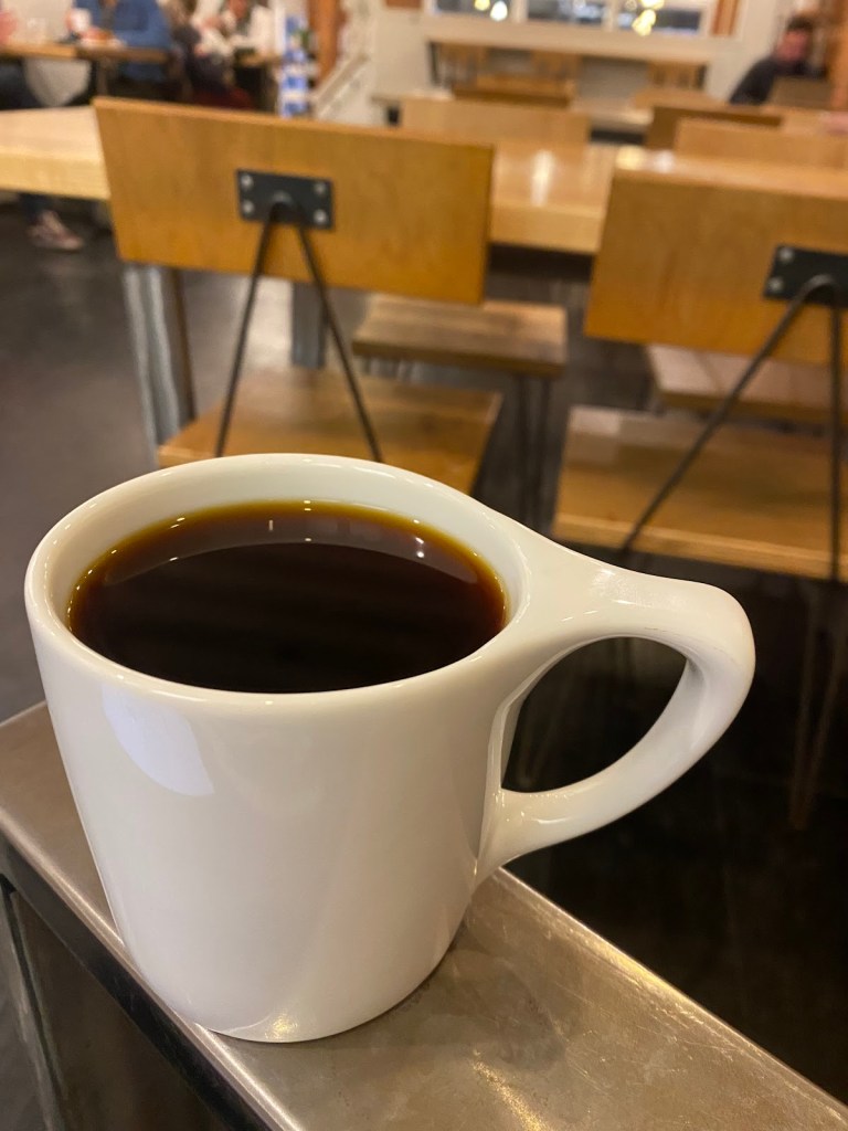There is a small section of pastries from what I saw as well as a wall of merchandise and coffee for sale. The space is not huge but they make good use of it with three tables for 2, 3 tables for 6, a bar that fits 3, and two lower set wood lounging chairs in the back. The wooden chairs are not the most comfortable to sit in for hours on end, but maybe for some of you your life doesn’t require sitting in the same place for hours. Honestly, I wish mine wasn’t so full of it either. But, alas, med school.
