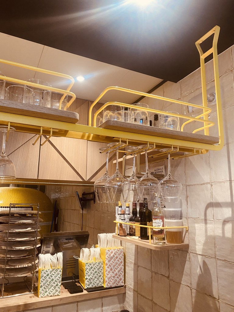 The place is a hip mix of black, white, yellow and light woods. There are two small rooms with a smattering of tables.